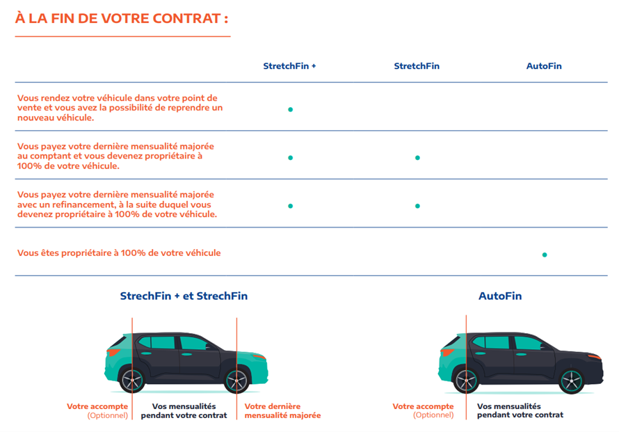 Profitez de nos formules de crédit flexibles aux mensualités allégées. La dernière mensualité plus élevée représente la valeur de reprise de votre véhicule. À la fin de votre contrat, vous avez le choix de payer votre dernière- mensualité ou de rendre votre véhicule et d’en reprendre un nouveau si vous le désirez.
